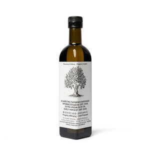 Obținut din măslinele Koroneiki, cultivate ecologic în grădini de munte la peste 500 m altitudine — fără pesticide. Răcoltare manuală și presare la rece (< 25 °C) pentru un ulei cu aciditate extrem de scăzută (< 0,3%) și concentrație ridicată de polifenoli